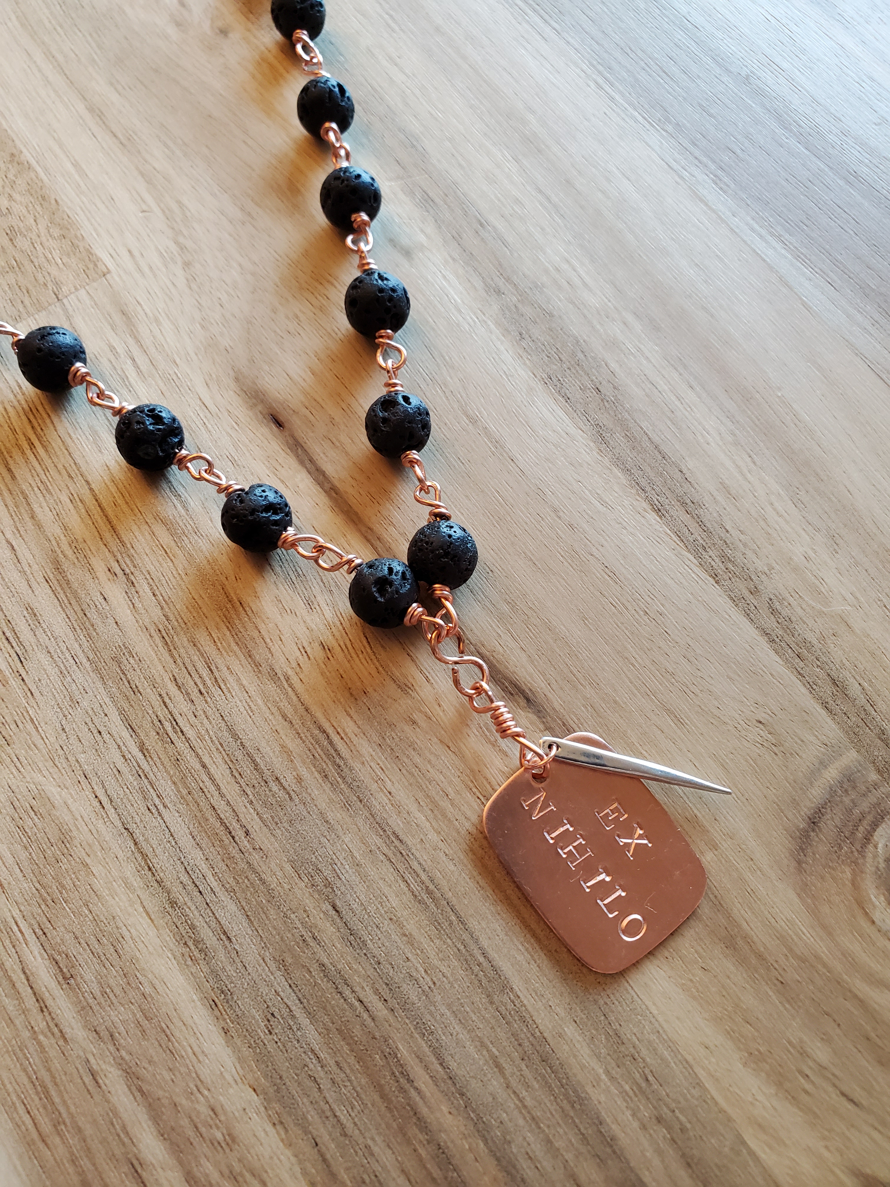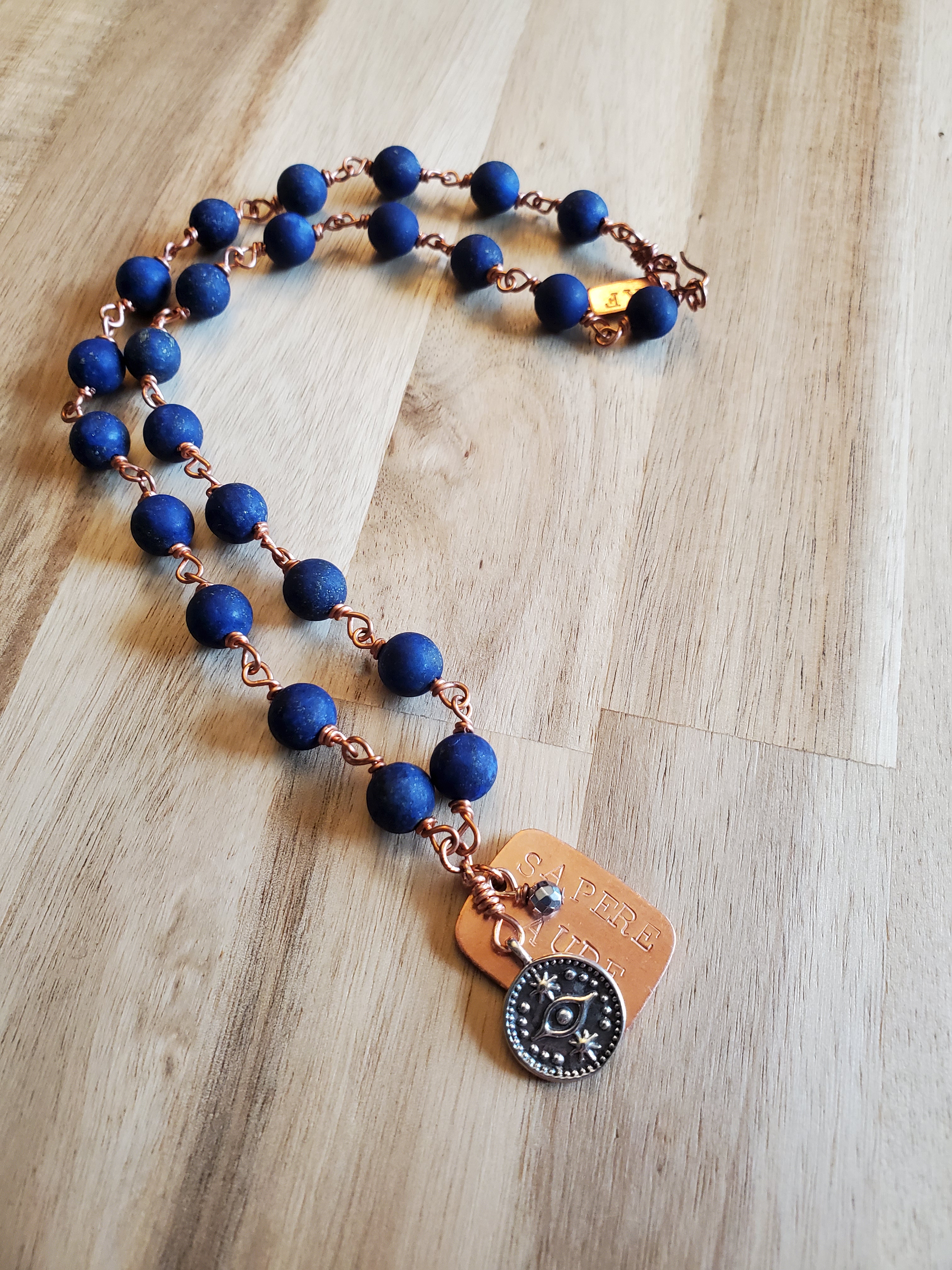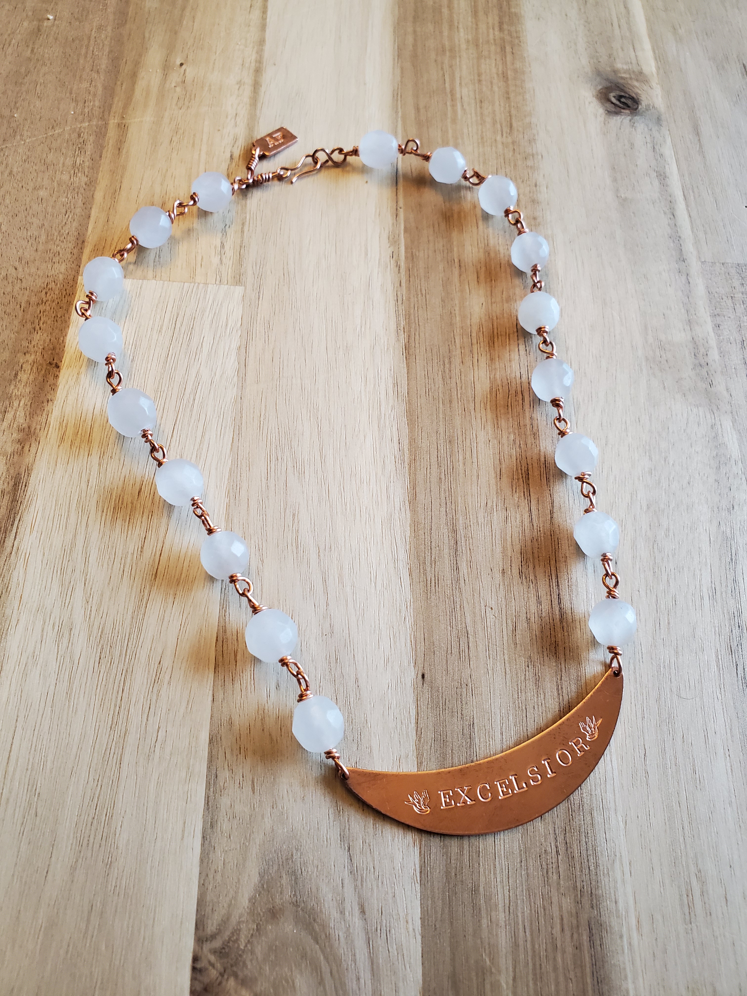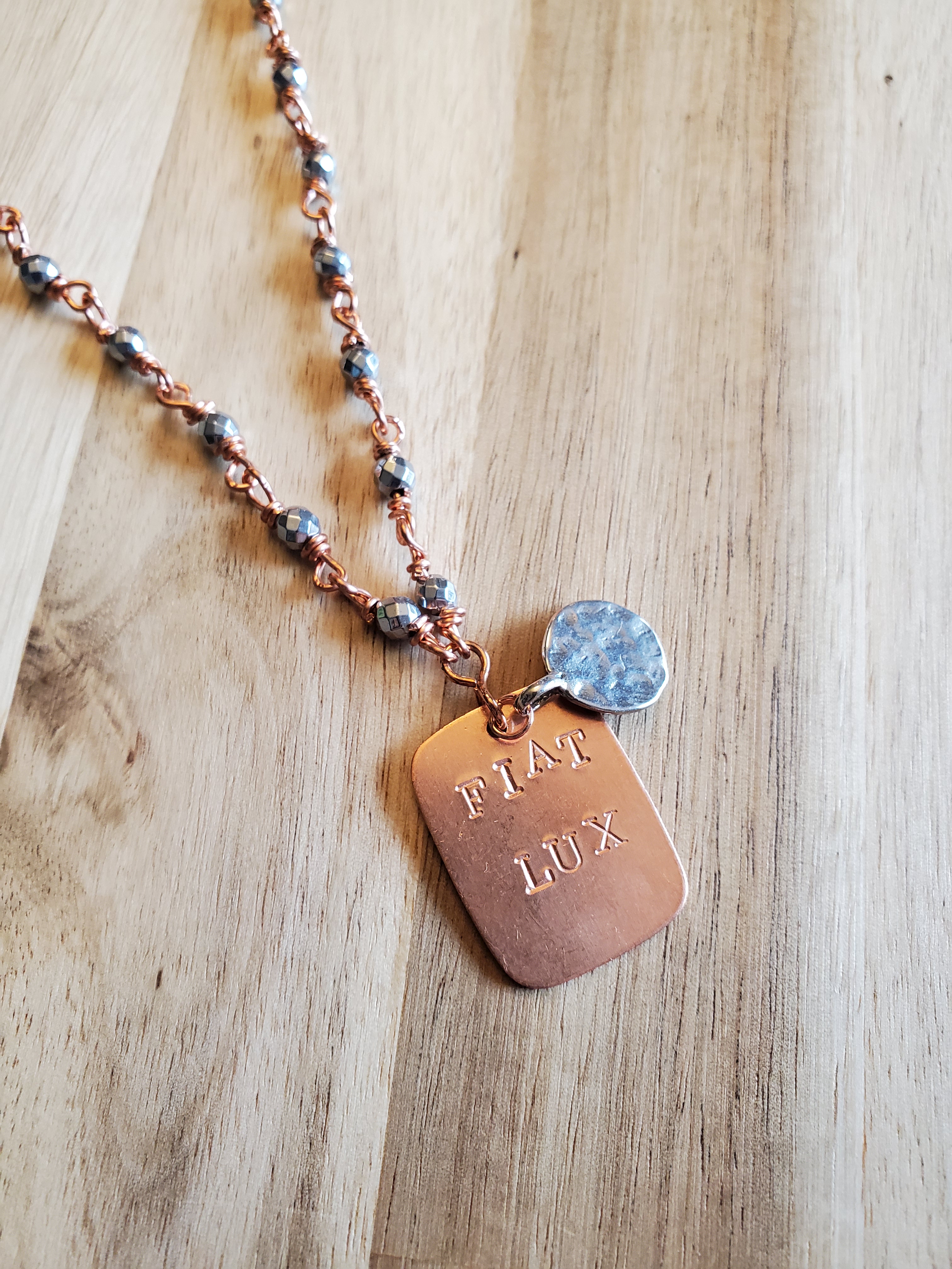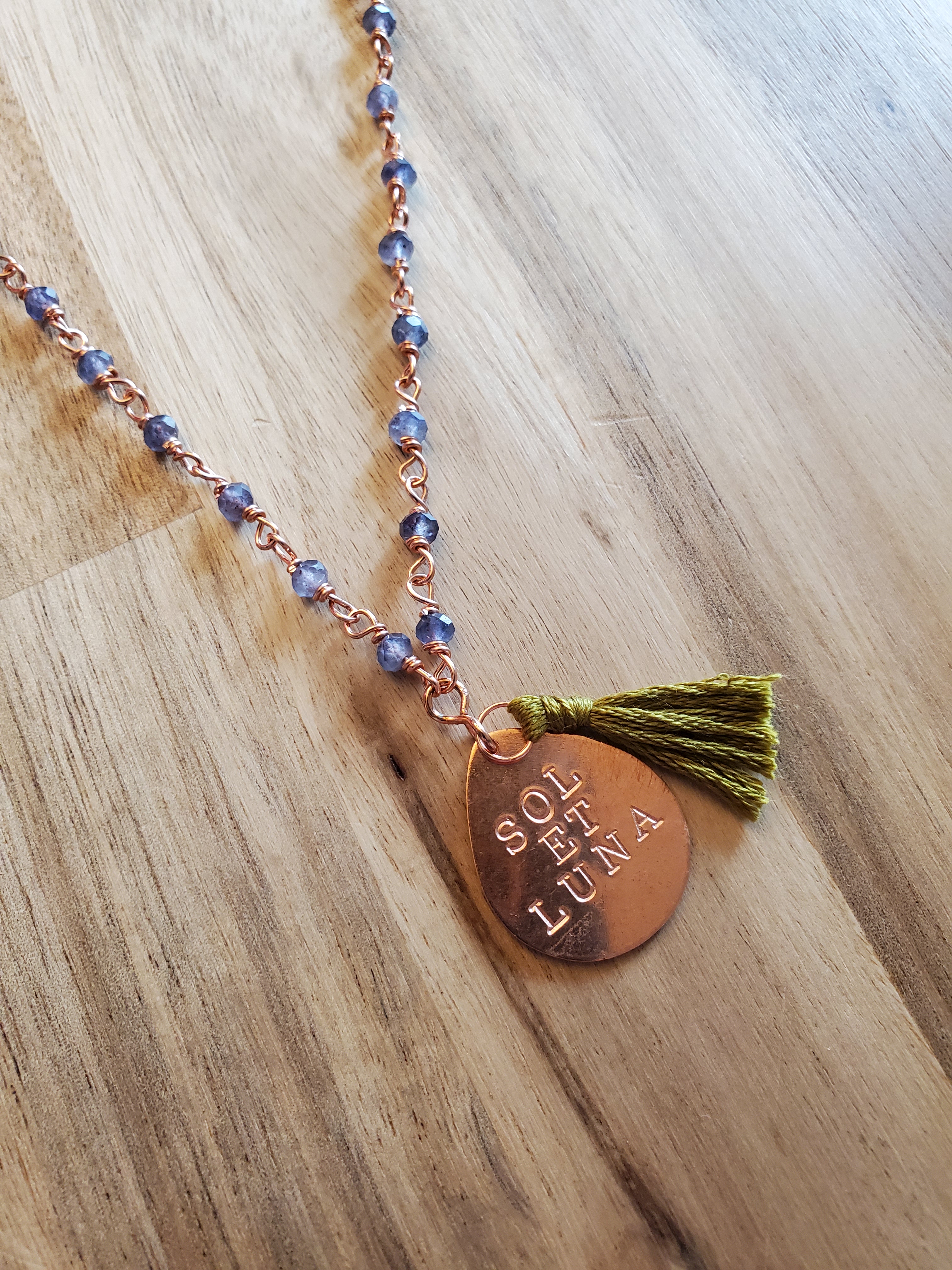 Handmade copper and sterling silver jewelry made with semi-precious gemstones and featuring empowering Latin phrases.