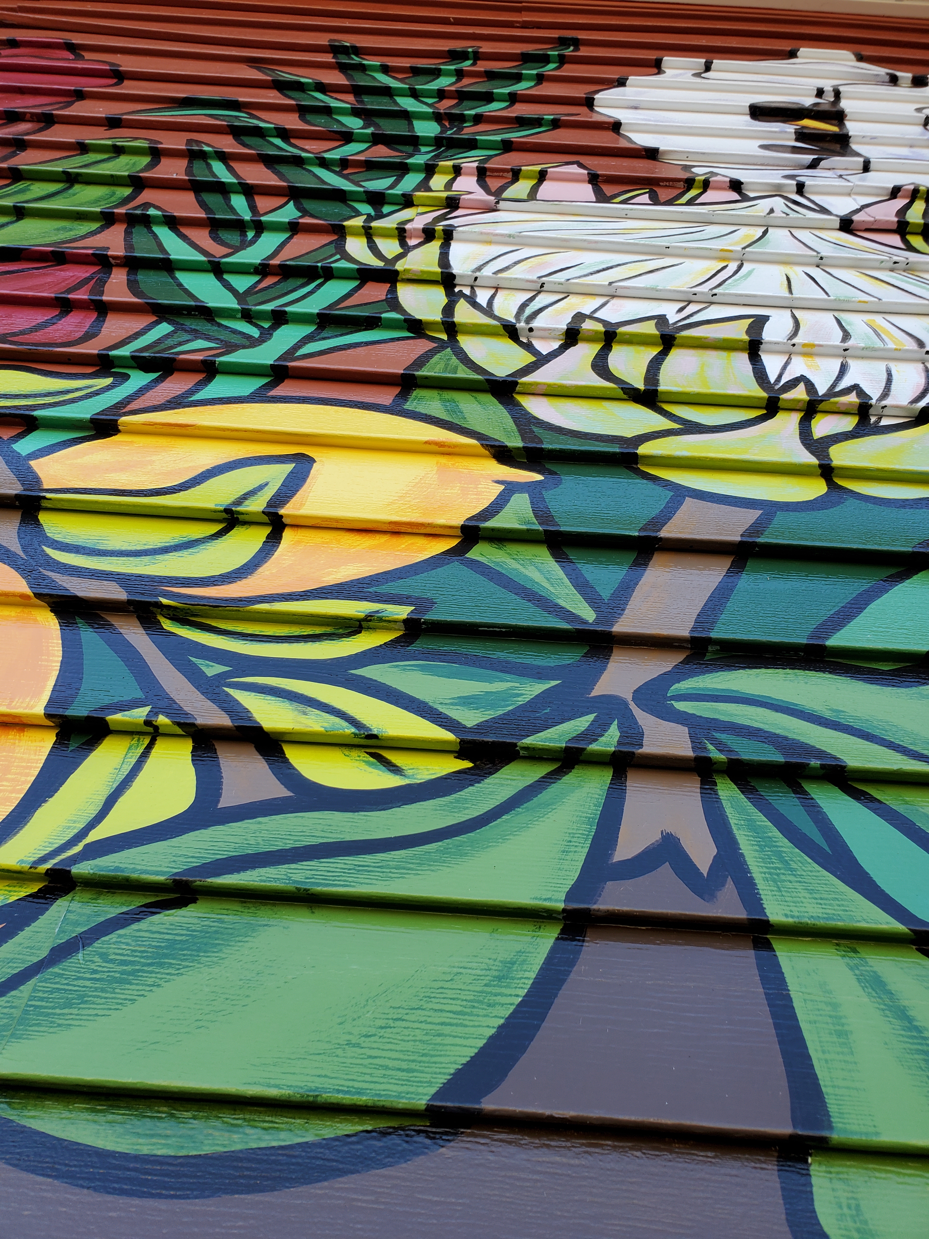 The slight shine you see is the Anti-Graffiti Clear Coat; an addition that I highly recommend if your exterior mural is in a public and highly-trafficked area.