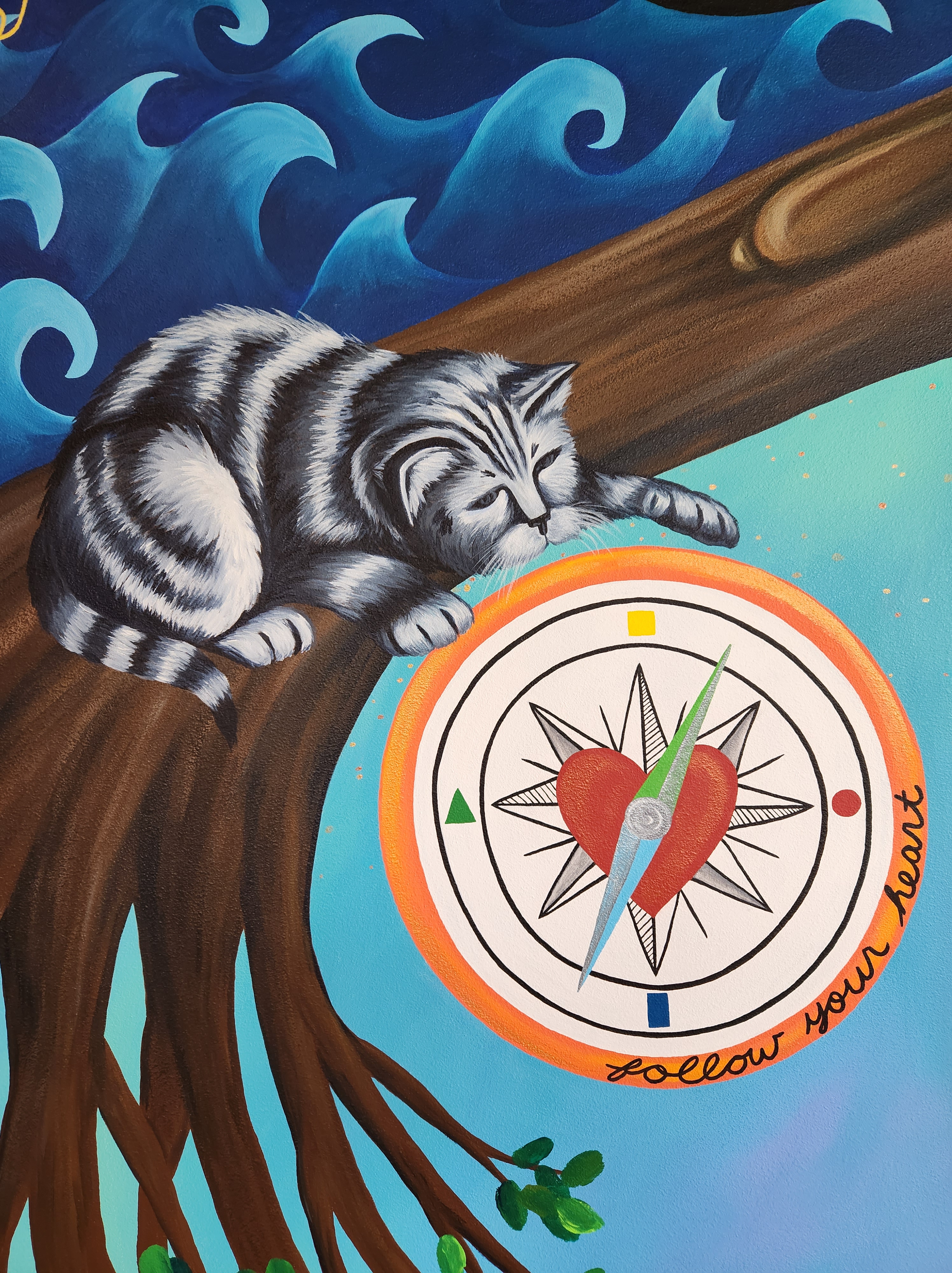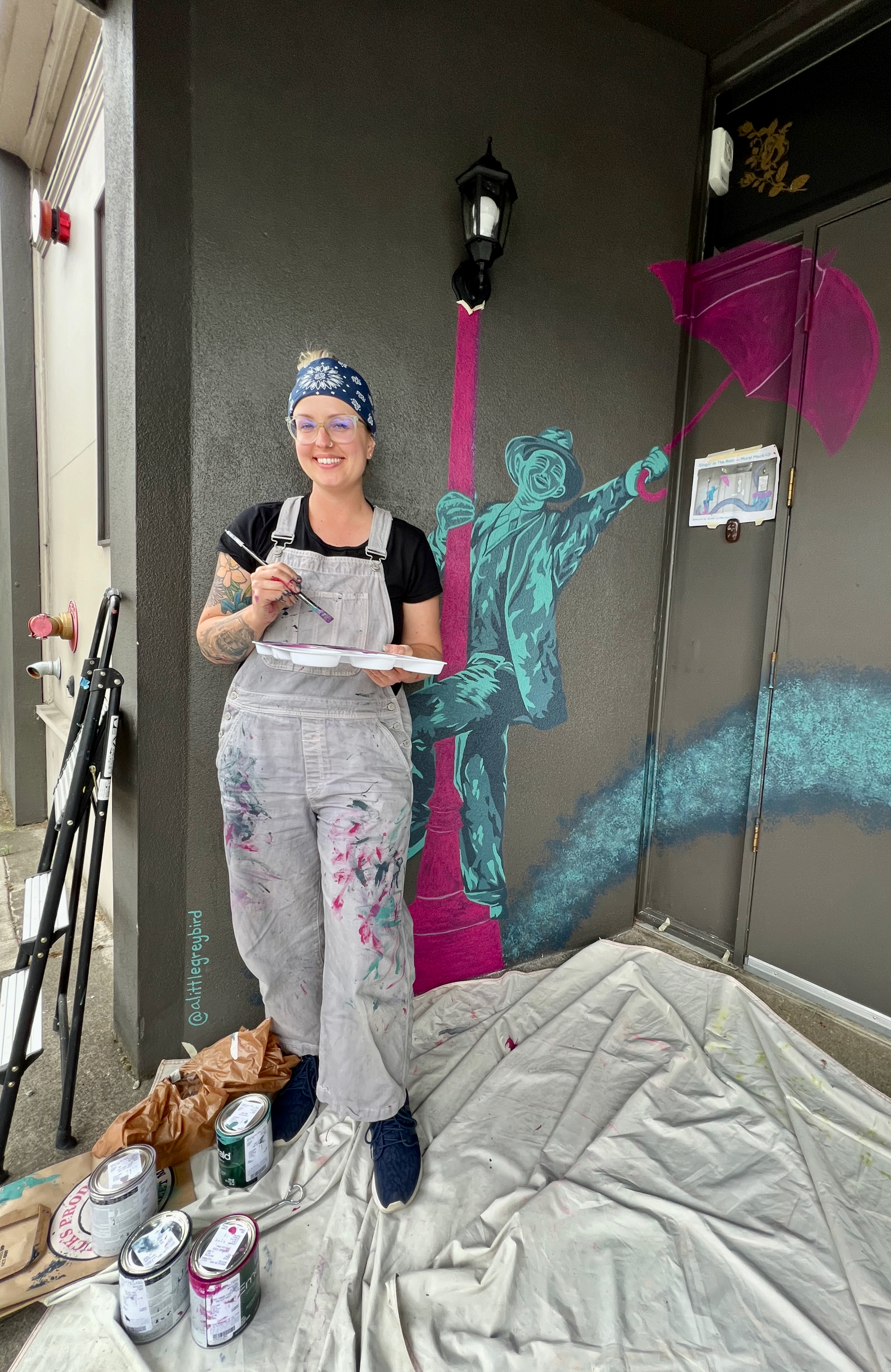 Once the Artwork Mock-Up has been given full approval (including color palette), we will sign a Commission Agreement that outlines the project in detail and fully protects us both. The total project cost and timeline (barring adjustments for inclement weather or unforseen circumstances) will be thoroughly outlined in this agreement and signed by both parties before painting begins so there are no surprises at the end. Fifty percent of your total mural cost is due upon the signing of this contract, which allows me to purchase supplies and reserve the project dates in my calendar. The remainder is due upon completion of the mural.